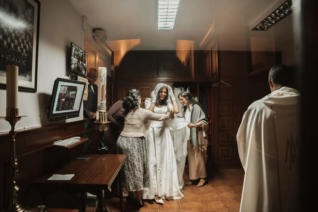 Fue un verdadero placer ser parte de la boda de Mariana y David, una pareja cuya fe y amor se sienten en cada rincón. Ellos, originarios de Portugal, nos regalaron una ceremonia hermosa, celebrada en español y portugués, que estuvo llena de emoción y alegría. Todos los invitados, especialmente las amigas de la novia, se entregaron por completo a la celebración, compartiendo risas y algunas lágrimas de felicidad. Fue una noche que reflejó a la perfección lo que son como pareja: un amor genuino y profundo. ¡Un evento que siempre recordaremos con cariño!
